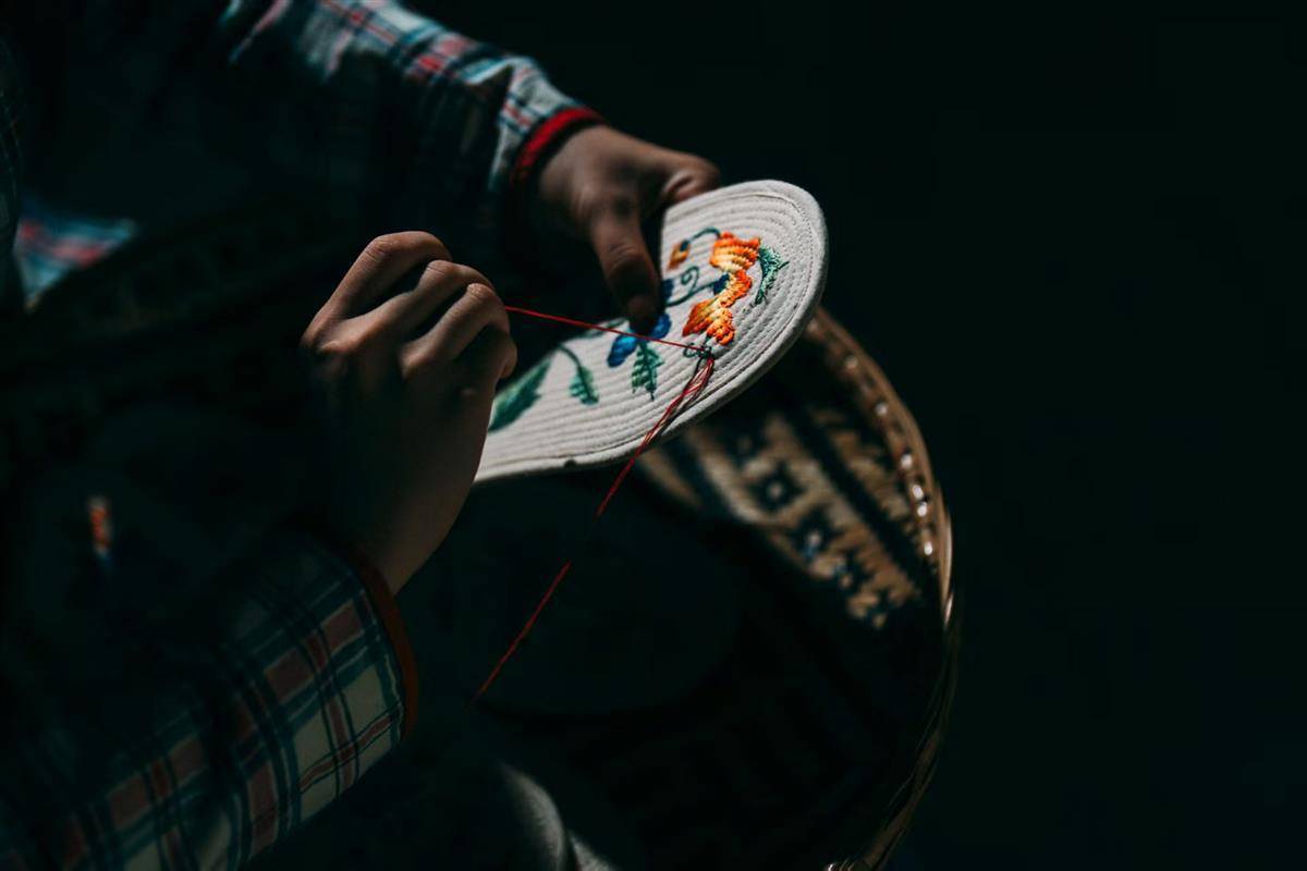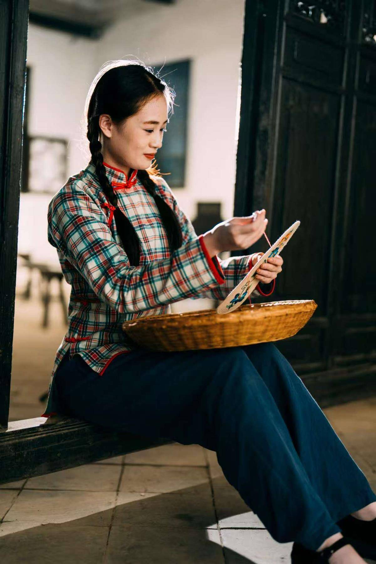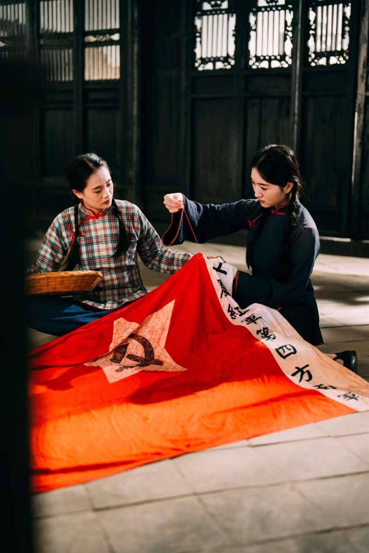 系列作品中,“女将缝军旗”一图尤为动人。红安绣活由非遗传承人现场指导,将省级非物质文化遗产——“打籽绣”“盘金绣”等传统技法融入拍摄过程。演员化身革命女战士,一针一线细致缝制军旗,画面中竹篮、陶罐等道具的运用,也巧妙呼应了“男将打仗,女将送饭”的红安革命民谣,既展现女性在革命历程中的重要作用,也彰显了非遗技艺在当代传承中的生命力。