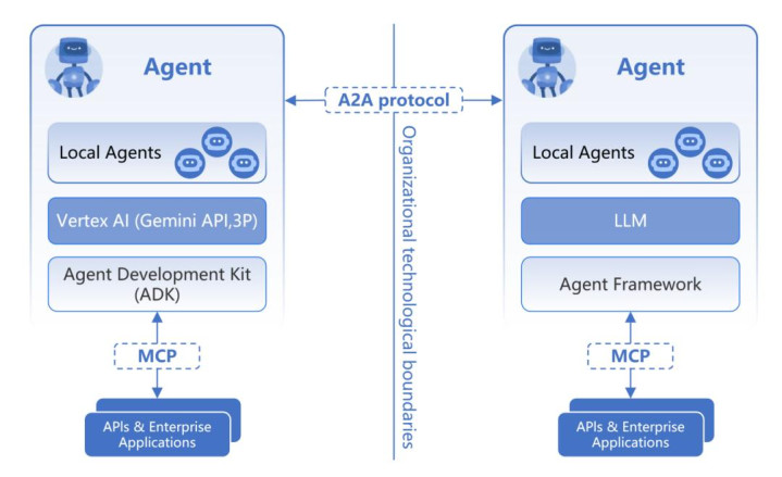 多个AI Agent系统则通过A2A协议(Google)进行交互。在多AI Agent系统内,Agents的发现、认证/授权、状态管理则需要重点关注。如下图所示: