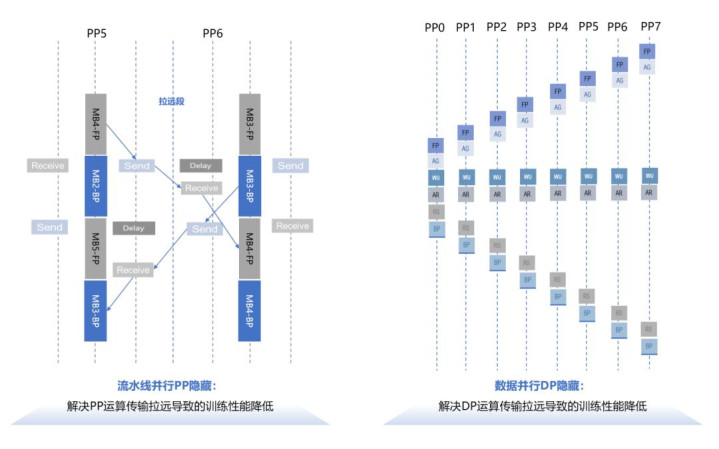 此外,在跨域训练/推理场景下除了从网络层面加速外,也可以从训练/推理的流水线并行和数据并行方面入手,流水线并行以及数据并行的流量特征与广域网的高延迟、有限带宽特性可在一定程度上适配,可将PP过程和DP过程合理分布于不同域,采用PP隐藏技术和DP隐藏技术进行优化,有效利用广域网的异属异构资源,降低全局开销,为Agentic AI模型训练和推理提供更灵活更深度的分布式扩展路径。