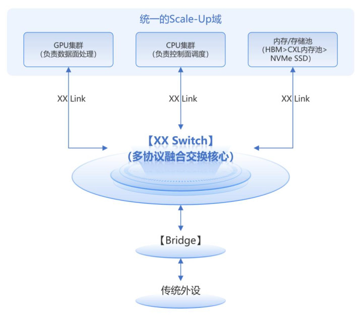 综上所述,GPU、CPU、存储及供电四大核心组件的技术发展正强力驱动Agentic AI算力架构的革新。我们预计未来将形成“底层以太网物理层承载,上层多逻辑通道并存”的融合互联架构。XXLink Switch将演进为该架构的智能核心,同时依然保留Bridge通道连接到XXSwitch上,保障了新技术迭代过程中的传统外设的平稳过渡。