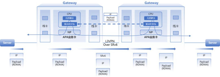 “端侧优化+网关增强+广网升级”一体化方案借助RDMA加速网关在集成了数据包缓存、ACK代答、拥塞通告与选择性重传四大功能,在SRv6流量调度能力加持下,实现超长距有效带宽提升6倍。