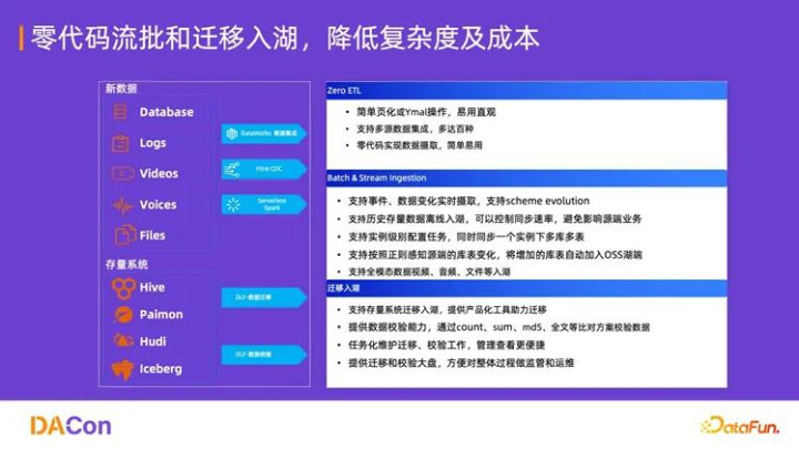 DLF 致力于实现 Zero ETL(零代码 ETL),简化数据摄取复杂度。