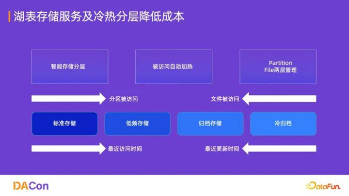 智能冷热分层:根据数据的访问频率和更新时间,自动将数据在标准存储、低频存储、归档存储和冷归档之间进行迁移。被访问的冷数据可实现自动加热,确保性能,同时大幅节省存储成本(可达 30% 以上)。
